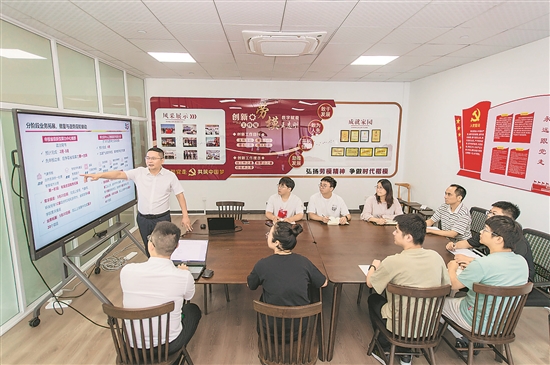 8月23日,在中國電信金華分公司勞模工作室內(nèi),浙江省勞動模范、首席技術(shù)官王志剛和青年員工交流,傳授技藝。