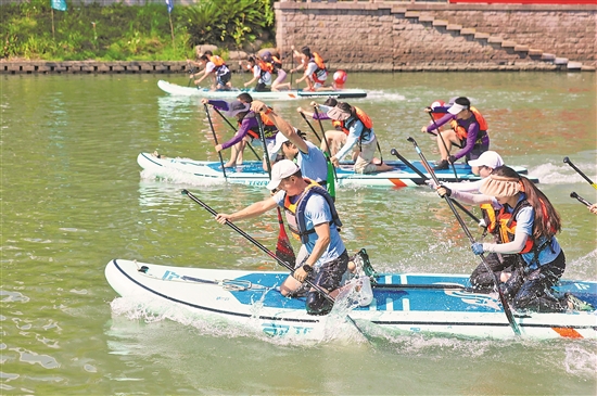 8月23日,在運(yùn)河大劇院南廣場旁的西塘河河道里,浙江省杭州市職工皮劃艇大賽舉行。130余名職工運(yùn)動員盡情享受水上運(yùn)動的樂趣,現(xiàn)場加油吶喊聲此起彼伏。
