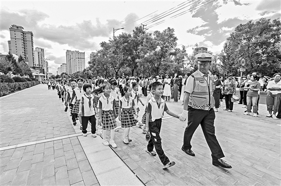 8月26日,甘肅省平?jīng)鍪嗅轻紖^(qū)迎來(lái)2024年秋季開(kāi)學(xué)。為保障轄區(qū)各學(xué)校有序開(kāi)學(xué),維護(hù)學(xué)校周邊社會(huì)治安平穩(wěn)有序,平?jīng)鍪泄簿轴轻挤志纸谎簿箨?duì)及轄區(qū)派出所民輔警深入中小學(xué)、幼兒園周邊重點(diǎn)路段,開(kāi)啟常態(tài)化護(hù)學(xué)模式,全力以赴站好“護(hù)學(xué)崗”,守護(hù)開(kāi)學(xué)季。本報(bào)通訊員 鄭兵 攝