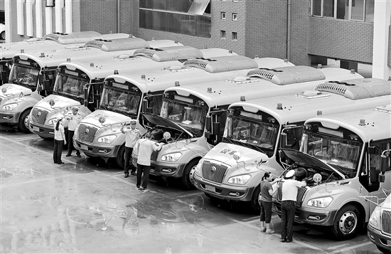 新學(xué)期開學(xué)在即,為保障學(xué)生乘車安全,各地組織開展校車安全專項(xiàng)檢查,對(duì)校車安全性能、司機(jī)駕駛資格以及隨車配備的安全應(yīng)急器材等進(jìn)行檢查,及時(shí)排除隱患,確保學(xué)生乘車安全。新華社發(fā) (王力 攝)