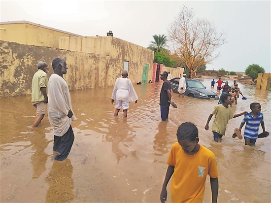 蘇丹衛(wèi)生部日前表示,該國(guó)已有10個(gè)州遭遇暴雨和洪澇災(zāi)害,造成至少138人死亡。圖為近日,在蘇丹北方州棟古拉,人們?cè)诜e水中前行。新華社發(fā)
