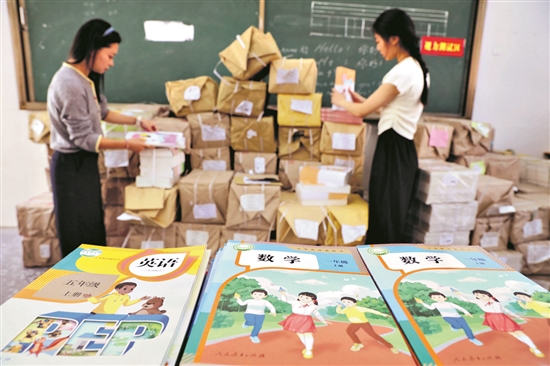 8月29日,河南省焦作市溫縣第三實驗小學(xué)教師在整理、分發(fā)新學(xué)期教材。開學(xué)在即,各地做好各項準(zhǔn)備工作,迎接新學(xué)期。 新華社發(fā)(徐宏星 攝)