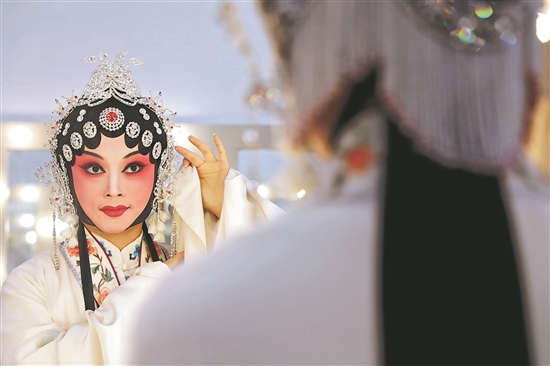 8月27日,2024首屆中國戲曲稀有劇種優(yōu)秀劇目展演在山東省濱州市博興縣拉開帷幕。從8月27日至9月1日,來自全國各地41個稀有劇種的41個優(yōu)秀劇目在此輪番登場,通過以折子戲、戲曲小戲、經典選段為呈現形式,集中展示戲劇藝術創(chuàng)作和人才培養(yǎng)的優(yōu)秀成果,助力稀有劇種健康發(fā)展。圖為戲曲演員正在后臺整理妝容,準備登臺表演。