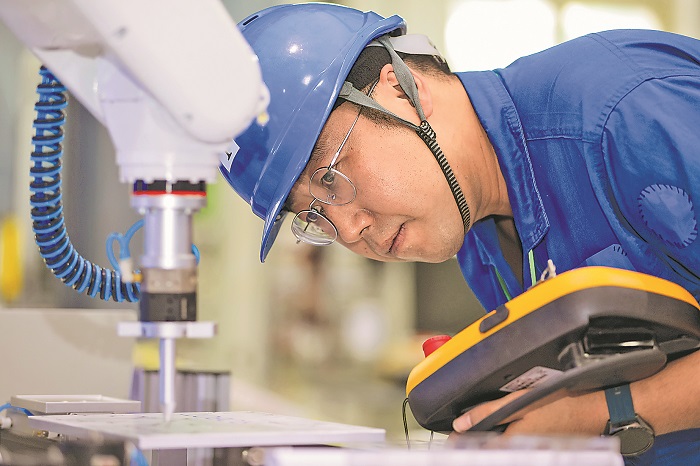 近日,在山東省青島工貿(mào)職業(yè)學(xué)校開展的青島市第十七屆職業(yè)技能大賽工業(yè)機(jī)器人操作調(diào)整工賽項(xiàng)現(xiàn)場,參賽選手進(jìn)行工業(yè)機(jī)器人系統(tǒng)外圍設(shè)備裝調(diào)維護(hù)比賽。當(dāng)日,來自青島市不同崗位的150余名選手同臺(tái)競技,比拼工業(yè)機(jī)器人安全基礎(chǔ)操作等技能。本報(bào)通訊員 張鷹 攝