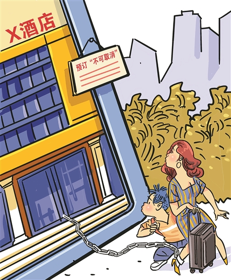 消費(fèi)者在網(wǎng)上預(yù)訂酒店后,如果計(jì)劃調(diào)整、行程有變,往往不能按期入住。一些酒店規(guī)定預(yù)訂后“不可取消”,固然可以減少酒店空置房間面臨的損失,可將風(fēng)險(xiǎn)全部轉(zhuǎn)嫁到消費(fèi)者身上,則構(gòu)成了消費(fèi)者權(quán)益保護(hù)法中“排除消費(fèi)者權(quán)利、免除經(jīng)營(yíng)者責(zé)任、加重消費(fèi)者責(zé)任”的不公平格式條款。對(duì)酒店而言,賺利潤(rùn)也要賺口碑,應(yīng)對(duì)這種常見(jiàn)狀況,不妨轉(zhuǎn)換思路,按照預(yù)訂時(shí)間距離入住日期的遠(yuǎn)近,兼顧淡旺季、房型等因素,合理確定違約金收取比例,最大程度平衡雙方利益。近來(lái),一些地方取消酒店入住強(qiáng)制刷臉、推出“行李隨人走、出行輕松游”的動(dòng)態(tài)行李寄存服務(wù),如今一些酒店仍對(duì)游客痛點(diǎn)視而不見(jiàn)甚至火上澆油,顯然不合時(shí)宜了。趙春青/圖 陳曦/文