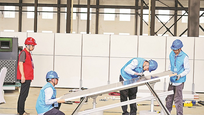 近日,浙江省光伏電站安裝運維職業(yè)技能競賽在浙江紹興新昌縣舉辦。本次技能競賽是全國首個集光伏電站安裝、調(diào)試、并網(wǎng)于一體的綜合性光伏職業(yè)技能競賽,浙江省內(nèi)共11家單位參賽。此次競賽在檢驗參賽人員工匠精神和職業(yè)素養(yǎng)的同時,進一步推動了全省光伏產(chǎn)業(yè)的健康發(fā)展。圖為參賽隊伍同臺競技,各展風(fēng)采。本報通訊員 張馨月 攝