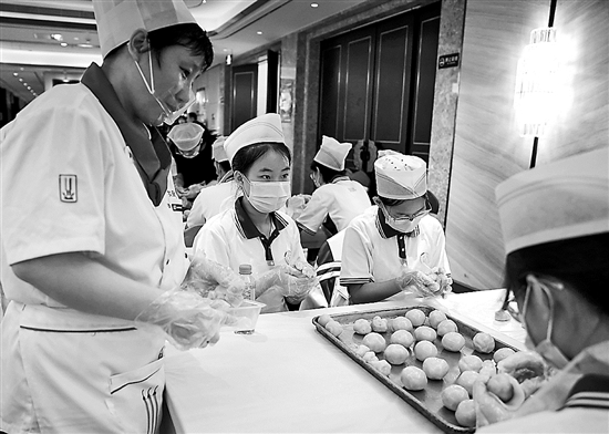 9月9日,在中秋佳節(jié)即將來臨之際,山東健康集團冶金賓館的廚師向山東省實驗中學(xué)德潤校區(qū)的42名學(xué)生展示月餅制作傳統(tǒng)技藝,并帶著同學(xué)們動手體驗。在這場迎中秋勞動教育活動中,同學(xué)們還通過知識競賽等形式深入了解傳統(tǒng)文化內(nèi)涵,感受勞動的意義。本報通訊員 袁瑞陽 攝