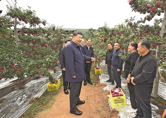 9月10日至13日,中共中央總書記、國家主席、中央軍委主席習近平在甘肅考察。這是11日上午,習近平在天水市麥積區(qū)南山花牛蘋果基地考察時,走進果林了解相關種植、技術和管理情況。新華社記者 謝環(huán)馳 攝