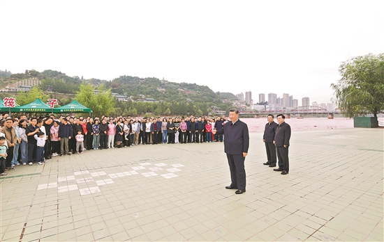 9月10日至13日,中共中央總書記、國家主席、中央軍委主席習近平在甘肅考察。這是11日下午,習近平在黃河蘭州中山橋段考察時,同在場的干部群眾親切交流。 新華社記者 王曄 攝