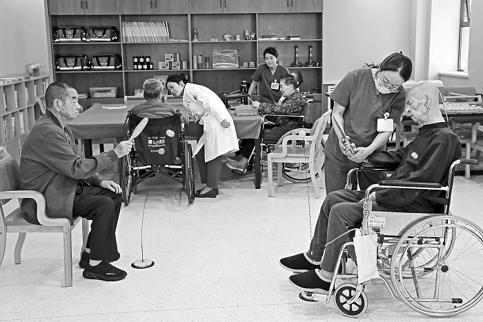 近日,在甘肅省蘭州市西固區(qū)中醫(yī)醫(yī)院康復(fù)分院的老年活動室,老人們在進(jìn)行康復(fù)。據(jù)介紹,該院與1家養(yǎng)老公寓、4家街道綜合養(yǎng)老服務(wù)中心簽訂了醫(yī)養(yǎng)結(jié)合服務(wù)協(xié)議,對老人進(jìn)行健康管理。目前,已有超兩萬名老年人納入該院健康管理體系。本報記者 吳凡 攝