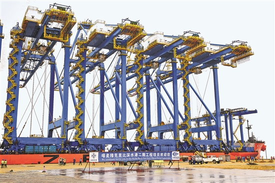 中企建設(shè)的喀麥隆深水港二期迎來港口起重機(jī)