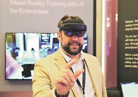 近日,在沙特阿拉伯首都利雅得舉行的第三屆全球人工智能峰會(huì)上,工作人員操控一款可用于企業(yè)培訓(xùn)的虛擬現(xiàn)實(shí)眼鏡。