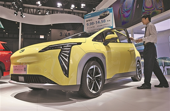 9月16日在車展上廣汽埃安展臺拍攝的“AION Y Plus”。