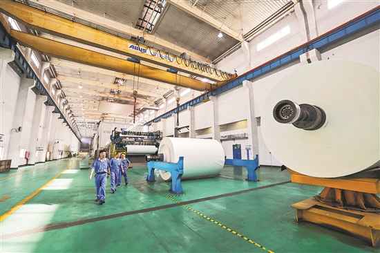 9月12日,在民豐特種紙股份有限公司七分廠生產現(xiàn)場,嘉興市南湖區(qū)的人大代表曹繼華(左一)、王洪祥(左二)在了解一線職工的想法,協(xié)調解決基層單位、職工群眾反映的實際問題和合理訴求。