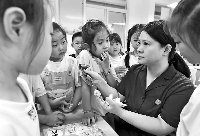 把一枚寫有“人民滿意的公務(wù)員”“為人民服務(wù)”字樣的金燦燦獎(jiǎng)?wù)?,展示在娃娃們面前,姚慧娟眼含熱淚,哽咽著給在場的小學(xué)生們講述獎(jiǎng)?wù)卤澈蟮墓适隆?/p>