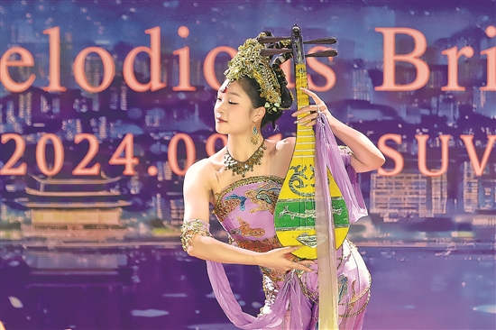 圖為當(dāng)?shù)貢r(shí)間9月17日,在斐濟(jì)蘇瓦市政廳,演員在“知音湖北·遇見(jiàn)斐濟(jì)——天涯共此時(shí)中秋晚會(huì)”上表演。新華社發(fā)(桑欽龍 攝)