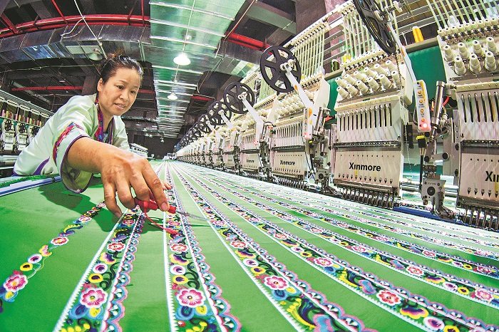 近年來,貴州省黔東南苗族侗族自治州從江縣通過減稅降費、助企紓困等政策,加大對民族刺繡產(chǎn)業(yè)的扶持力度,引進智能繡花設(shè)備,實現(xiàn)產(chǎn)品迭代升級,節(jié)省了人力成本,提升了生產(chǎn)效率,推動刺繡產(chǎn)業(yè)由傳統(tǒng)加工向數(shù)字化、智能化轉(zhuǎn)型。