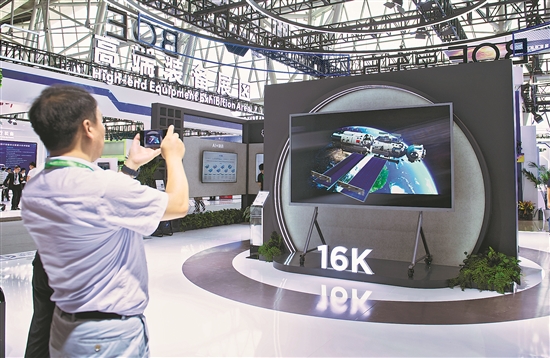 9月20日,觀眾在2024世界制造業(yè)大會展館內(nèi)了解16K裸眼3D屏幕。