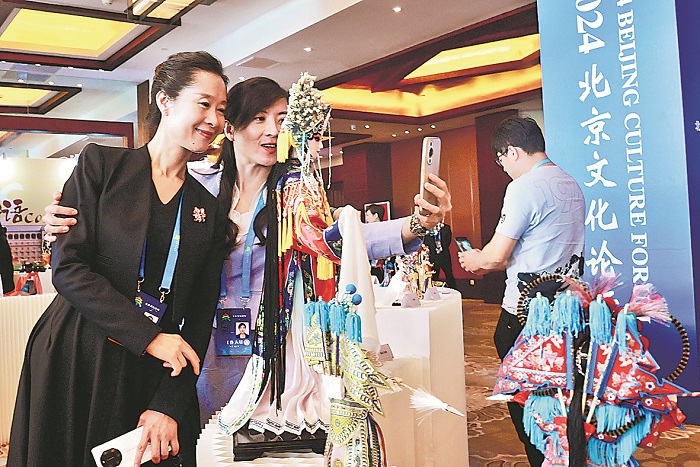 工作人員在論壇上與非遺北京絹人合影留念。本報(bào)記者 蔚可任 攝