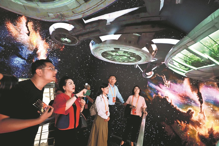 北京文化論壇線路三的嘉賓在利亞德集團(tuán)“科技體驗(yàn)中心”感受元宇宙體驗(yàn)艙。本報(bào)記者 蔚可任 攝