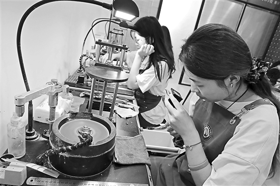 將36家珠寶行業(yè)頭部企業(yè)大師引入校園,在教學中嵌入企業(yè)生產(chǎn)標準和項目——