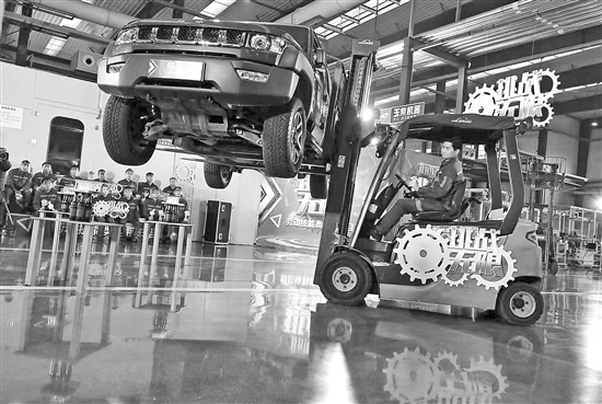 來自廣西玉柴機(jī)器股份有限公司制造事業(yè)部的鄭天樹是一名普通叉車司機(jī),在叉車這個(gè)崗位上干了30個(gè)年頭,練就了“一叉準(zhǔn)一放準(zhǔn)”的絕活,成為遠(yuǎn)近聞名的叉車司機(jī)“牛人”。在“桂有技能”的活動中,鄭天樹挑戰(zhàn)了“力挑千鈞”項(xiàng)目,他以“人車合一”的精湛技藝,用叉車將2.3噸越野車放在玻璃和啤酒瓶上,玻璃瓶“毫發(fā)無損”。在現(xiàn)場觀看的工友對他這項(xiàng)絕活贊不絕口,為他鼓起了陣陣掌聲。