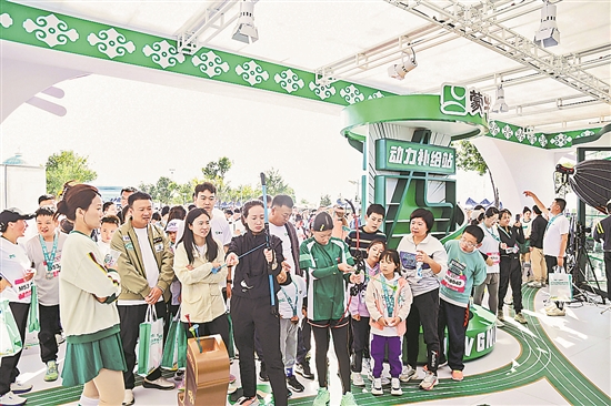 蒙牛為呼馬完賽跑者提供傳統(tǒng)射箭游戲、筋膜槍賽后修復(fù)等互動(dòng)項(xiàng)目。本報(bào)記者 朱亞男 攝
