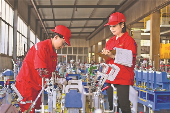 9月24日,泊頭市金鍵模具有限責(zé)任公司技術(shù)人員在產(chǎn)品檢測(cè)車(chē)間內(nèi)工作。
