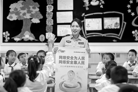 9月9日至15日,以“網(wǎng)絡(luò)安全為人民,網(wǎng)絡(luò)安全靠人民”為主題的2024年國家網(wǎng)絡(luò)安全宣傳周在全國范圍內(nèi)統(tǒng)一開展。多地學(xué)校組織相關(guān)活動(dòng),宣傳網(wǎng)絡(luò)安全理念、普及網(wǎng)絡(luò)安全知識(shí)、推廣網(wǎng)絡(luò)安全技能。新華社發(fā) (周社根 攝)