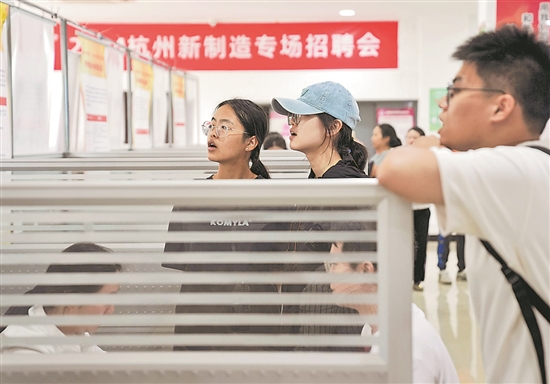 9月25日,求職者在“金秋送崗 職等你來(lái)”杭州市新制造專場(chǎng)招聘會(huì)上查看崗位需求信息。