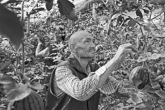 9月21日,在新疆維吾爾自治區(qū)疏勒縣塔孜洪鄉(xiāng)“蔬樂”現(xiàn)代高效農(nóng)業(yè)示范園的大棚里,村民吉力力·巴柯正在給當(dāng)?shù)靥禺a(chǎn)的西瓜整枝打叉。