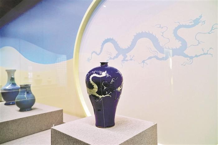 元代藍釉白龍紋梅瓶亮相頤和園