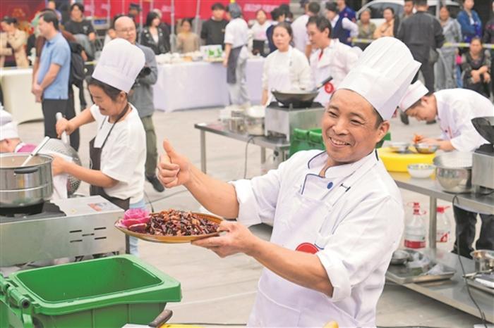 10月2日,重慶市北碚區(qū)金刀峽鎮(zhèn)聯(lián)合北碚職教中心舉辦廚藝大賽,當(dāng)?shù)?2家餐飲門店廚師圍繞金刀峽魔芋鴨、金刀峽腰花面等指定菜品進(jìn)行現(xiàn)場比賽,大家在喜慶的氛圍中歡度國慶佳節(jié)。同時,通過比賽提升餐飲行業(yè)從業(yè)人員職業(yè)技能,促進(jìn)餐飲文化的交流與發(fā)展,為金刀峽鎮(zhèn)鄉(xiāng)村旅游和鄉(xiāng)村振興提供人才和智力支持。本報通訊員 秦廷富 攝