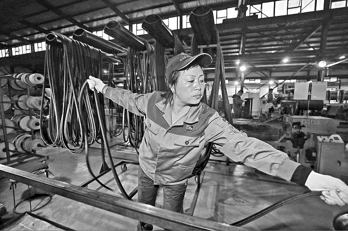 10月10日,在黑龍江佳木斯金蘭馬橡塑制品制造有限責(zé)任公司車間,工人正在趕制訂單。