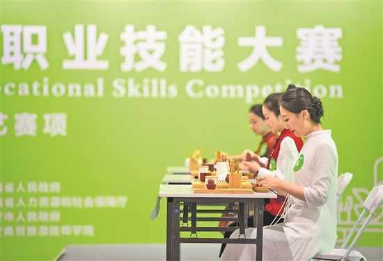 10月16日,參賽選手在陜西省2024職業(yè)技能大賽茶藝賽項(xiàng)比賽中。