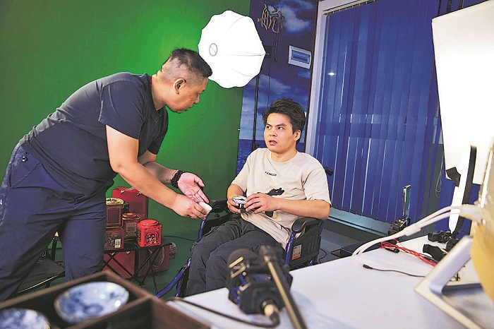 黎志新的設(shè)想其實(shí)正在悄然變?yōu)楝F(xiàn)實(shí)。10月16日,在梧州市殘疾人輔助性就業(yè)基地的模擬直播間,基地負(fù)責(zé)人陳詠加正在教一名殘疾人如何進(jìn)行直播帶貨。與其他直播間不同,陳詠加往往會(huì)從六堡茶的歷史文化方面入手,讓殘友在提升技能的同時(shí)也能提升內(nèi)在修養(yǎng)。
