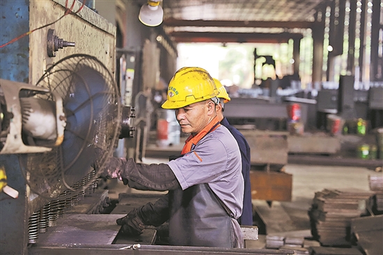 10月中旬,在貴州一鋼材公司,技術(shù)人才正在打磨拋光H型鋼材料。