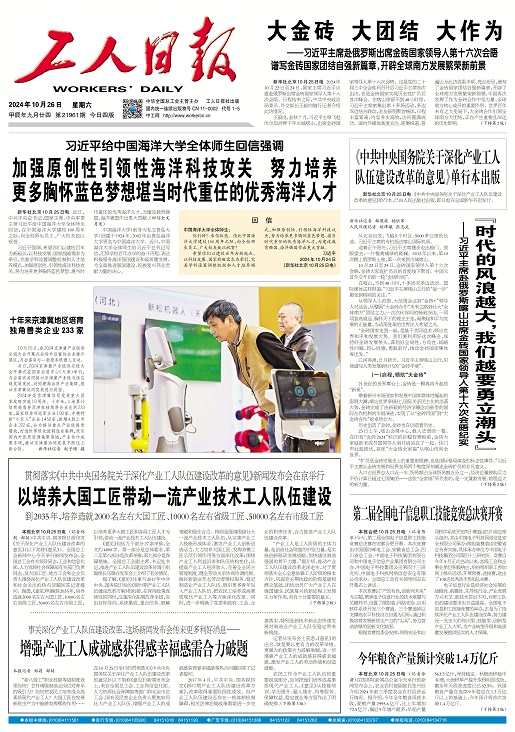 工人日?qǐng)?bào) 2024年10月26日 星期一