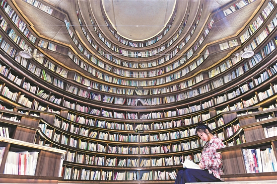 10月25日,在日照山海天旅游度假區(qū)海洋美學(xué)館民宿區(qū)配套的城市書(shū)房,一位市民在看書(shū)。