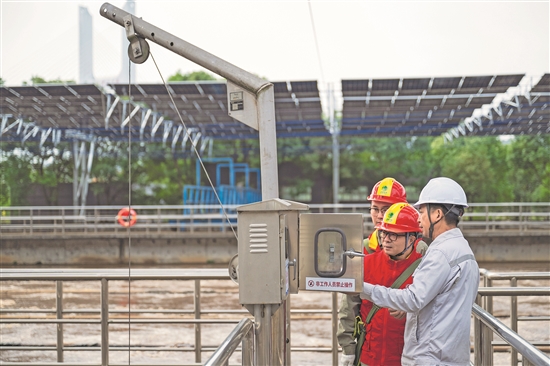 近年來,南水北調(diào)中線核心水源區(qū)湖北省十堰市充分利用原有的資源稟賦和產(chǎn)業(yè)基礎(chǔ),加快綠色低碳轉(zhuǎn)型。中國能建葛洲壩水務(丹江口)有限公司污水處理廠在國網(wǎng)十堰供電公司的支持下,在生化池上方建設(shè)光伏電站,通過清潔能源驅(qū)動污水處理,助力綠色低碳發(fā)展。