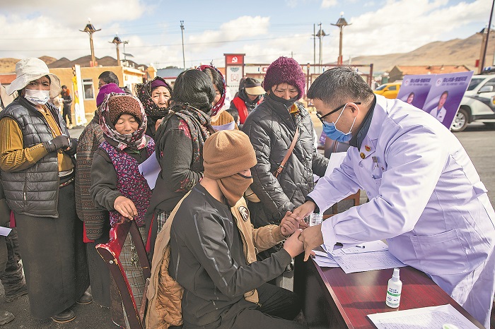 10月27日,四川省阿壩藏族羌族自治州阿壩縣賈洛鎮(zhèn),來(lái)自北京的醫(yī)療專(zhuān)家正在為當(dāng)?shù)厝罕娺M(jìn)行義診。
