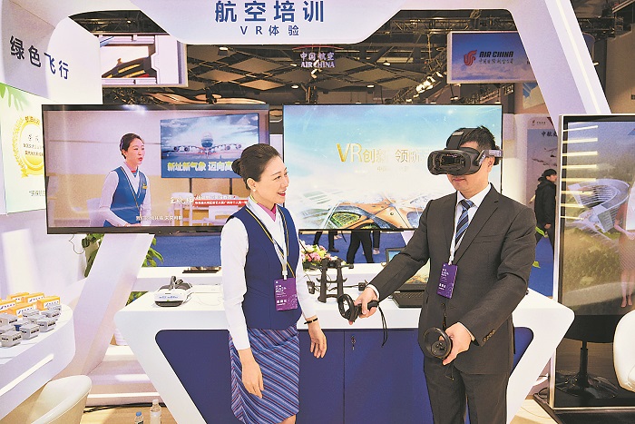 圖為在南航展位,觀眾正在參與航空培訓VR體驗。