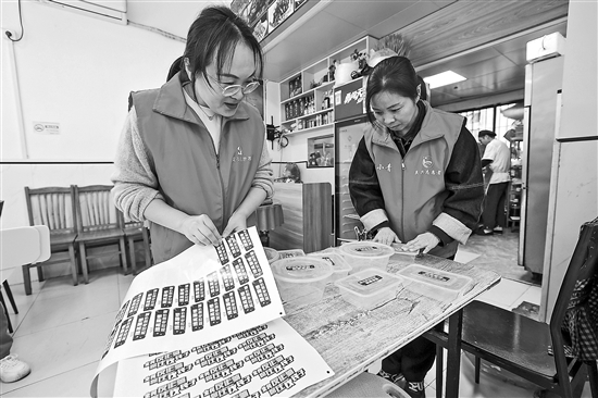 10月29日,在浙江省湖州市吳興區(qū)龍泉街道學(xué)士府社區(qū)的餐飲店,黨員志愿者在打包盒上張貼反詐騙貼紙,通過這種方式擴(kuò)大宣傳的范圍和效果。為提升公眾防范意識、構(gòu)建和諧社會環(huán)境,龍泉街道聯(lián)合龍泉派出所、司法所在各個社區(qū)對居民及商戶開展全民反詐禁毒系列宣傳活動,共筑基層反詐禁毒防線。新華社記者 徐昱 攝