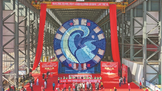 圖為超大直徑盾構(gòu)機(jī)“江海號”下線儀式現(xiàn)場。新華社記者 陳澤國 攝