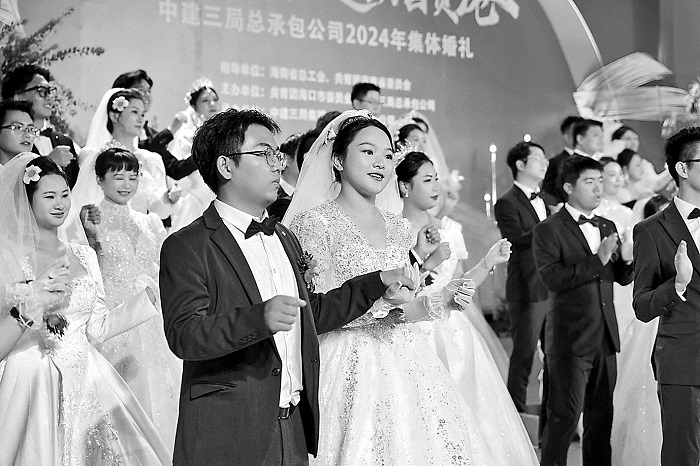 10月26日,由海南省總工會、共青團海南省委員會指導,共青團??谑形?、中建三局總承包公司聯(lián)合舉辦的“情定海之南,建功自貿港”青年集體婚禮在??谑信e行。參加集體婚禮的30對新人中,大多是來自建設生產一線的工長、技術員、安全員等。此次婚禮融入海南當地特色文化,還為新人精心策劃了主題攝影活動,30對青年建設者的風采與幸福瞬間被定格。