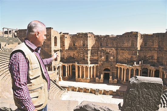 作為歷史上的戰(zhàn)略要地以及沙漠商隊和信徒朝覲的重要中轉(zhuǎn)站,敘利亞的布斯拉古城被鐫刻上不同文明的印記,是敘利亞的文化瑰寶,1980年被列入《世界遺產(chǎn)名錄》。然而,經(jīng)歷13年的敘利亞內(nèi)戰(zhàn),布斯拉古城的一些歷史遺跡被炸毀,部分文物被盜。游客對周邊安全形勢的擔憂嚴重影響了當?shù)芈糜螛I(yè)的發(fā)展。這導致小鎮(zhèn)居民失去了重要的收入來源,文物工作者大量流失。圖為近日,在敘利亞德拉省布斯拉鎮(zhèn),布斯拉古城遺址管理部門負責人阿拉·薩拉赫介紹情況。