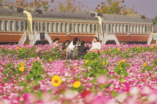 11月3日,安徽省合肥市肥東縣梁園鎮(zhèn)一觀光農(nóng)場(chǎng),人們?cè)诟裆;êV行蕾p美景。近年來(lái),肥東縣大力發(fā)展休閑農(nóng)旅融合項(xiàng)目,帶動(dòng)周邊居民就業(yè),描繪鄉(xiāng)村振興新畫(huà)卷。