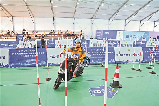 王俊峰在第八屆全國(guó)職工職業(yè)技能大賽網(wǎng)約配送員技能競(jìng)賽現(xiàn)場(chǎng)。李慶峰 攝