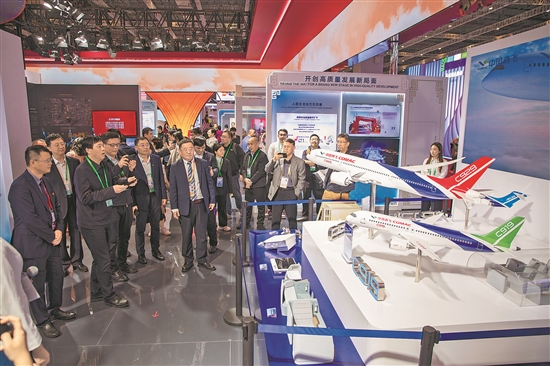 11月5日,第七屆中國國際進口博覽會在上海開幕,圖為觀眾在中國館參觀。今年的中國館以“推進中國式現(xiàn)代化,共謀世界發(fā)展繁榮”為主題,重點展示推進中國式現(xiàn)代化建設(shè)和推動高水平對外開放的最新成果,展現(xiàn)中國加快培育和發(fā)展新質(zhì)生產(chǎn)力的嶄新氣象。