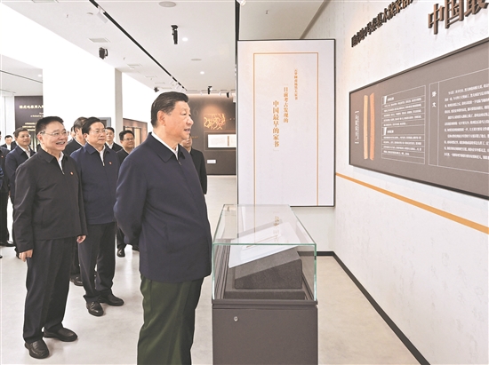 11月4日至6日,中共中央總書(shū)記、國(guó)家主席、中央軍委主席習(xí)近平在湖北考察。這是4日下午,習(xí)近平在孝感市云夢(mèng)縣博物館參觀出土秦漢簡(jiǎn)牘展。 新華社記者 謝環(huán)馳 攝